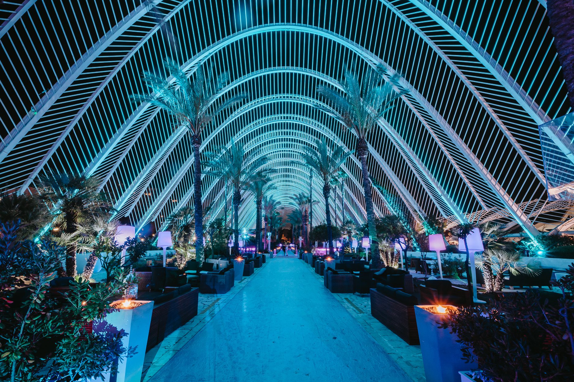 Terraza L´Umbracle, es la columna vertebral de Ciudad de las Artes y de las Ciencias. Un jardín al aire libre de 4.000m2 decorado con un mobiliario lleno de detalles elegantes y esculturas que consigue transmitir sensaciones únicas a nuestros visitantes.