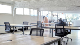 Urbine es un espacio para producir, crear y exhibir, pero también, para innovar, compartir y experimentar. Un dinamizador social y económico, geo-localizado en un emplazamiento estratégico, el Distrito Cultural de LH, uno de los focos creativos más efervescentes del panorama nacional. En concreto, en una antigua nave industrial, de 2.000m2 distribuida en 4 plantas, a la que despoja de sus complejos de edificación en declive, para dotarla de una nueva identidad.